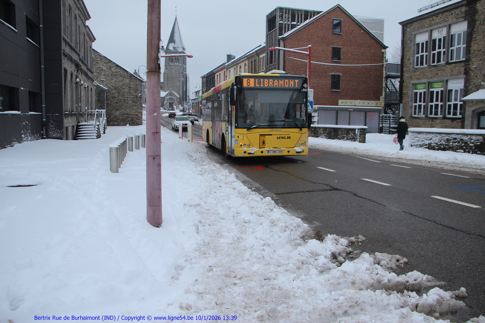 1115. Le 10/1/2026, le Jonckheere Transit 2000 / Volvo B7RLE n°4565 du TEC sur la ligne 8 vers Libramont dans les rues de Bertrix.