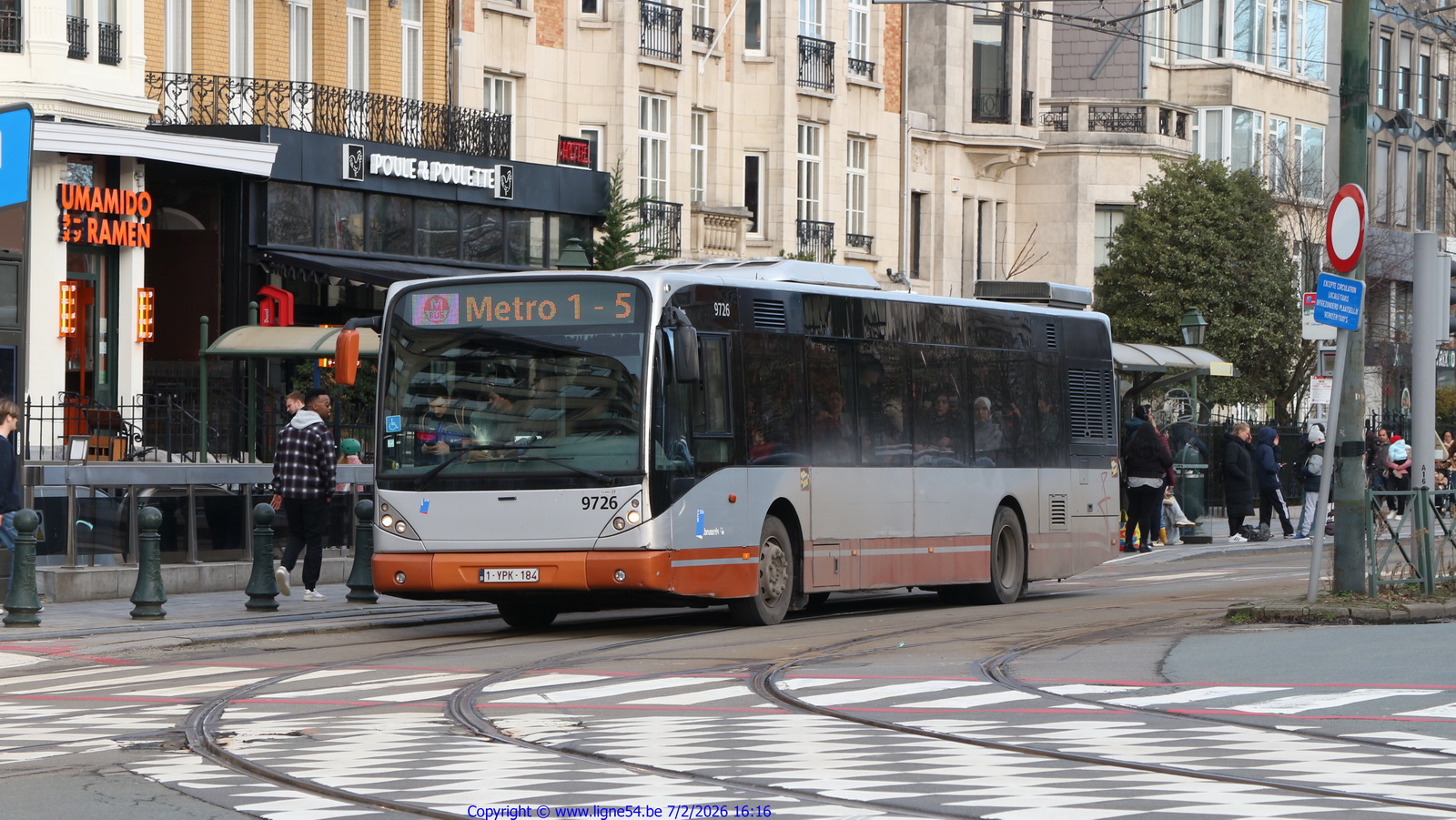 1119. Le 7/2/2026, le Van Hool NewA330 n°9726 de la STIB sur une navette métro à hauteur de la station Merode.